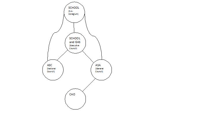 Pour que nous puissions partager une vision commune de notre communauté il est essentiel que nous en comprenions clairement la structure actuelle. Le schéma ci-dessous résume les rapports-clés entre les différents organes de la Société anthroposophique en Amérique. À partir de schémas simples comme celui-ci nous pouvons commencer à nous mettre d’accord sur QUI devrait faire QUOI.
